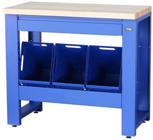 - Työpajapöytä Cyclus Tools System 500 89 x 100 x 50 cm with trash can 3 x 25 L, pull-out 3 containers, drawer blue (720819)