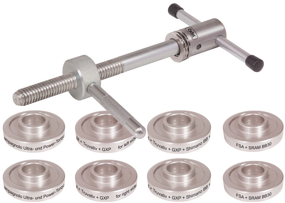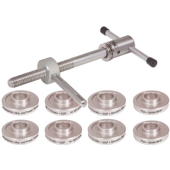 - Työkalusarja Cyclus Tools bottom bracket press with 5 bushing pairs for 24/30 mm Press-Fit Shimano / SRAM / Campagnolo / FSA (7