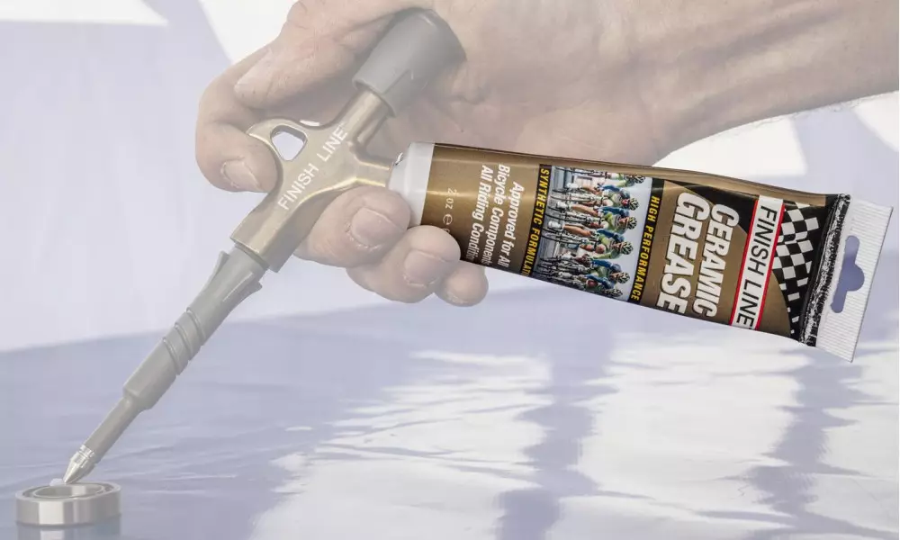 Ceramic Grease represents Finish Line's most advanced bearing lubrication technology. Formulated with ceramic particles, fluoropolymer additives, and premium non-toxic synthetic oils. Guaranteed to optimize the performance and efficiency of bottom bracket, hub, and headset bearings. As bearings become coated with ceramic particles, friction and heat are dissipated. Bearings last longer and run quieter and smoother.