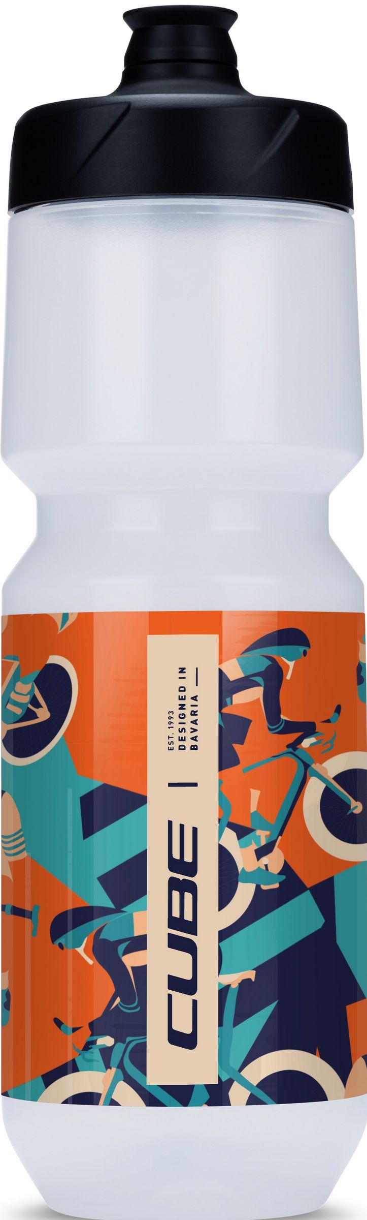 The cube drinking bottle flow has our own specially developed push-pull valve and a comfortably soft drinking mouthpiece as well as a large screw lid for optimal filling and cleaning. The bottle body is constructed from highly durable and odourless ldpe plastic. Available in two sizes: 0.5 And 0.75 Litres, and in different designs - perfectly matched to our products.