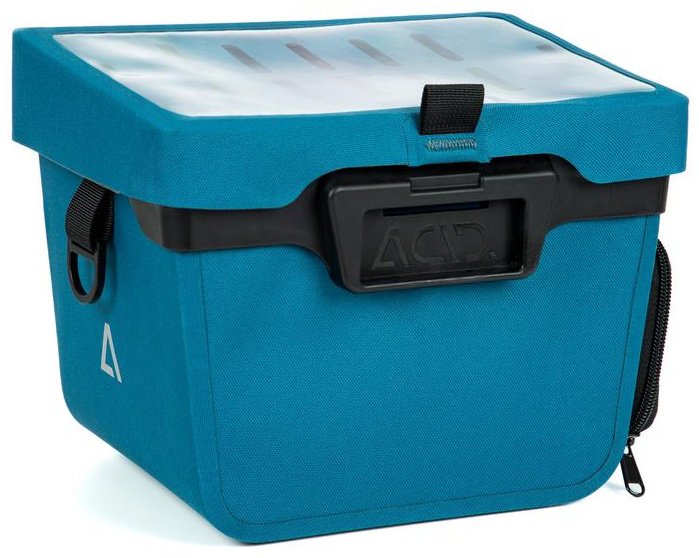 The functional, waterproof Handlebar Bag PRO 7 comes with the ACID FILink system for quick, secure attachment. A convenient shoulder strap takes it from rack to shoulder with ease. And the integrated window with touchscreen function means there's no need to take out your smartphone every time you need to check your messages or route. There's even a fold-out side pocket to stow your drinking bottle within easy reach at all times. Reflectors add visibility in all conditions.