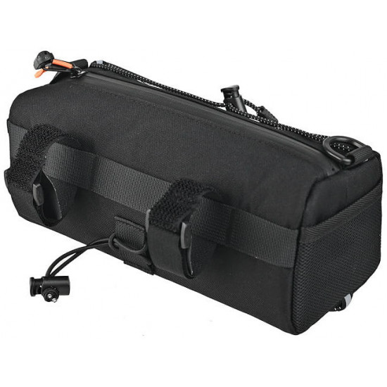 - Mounted on the handlebar with two Velcro straps and an elastic cord