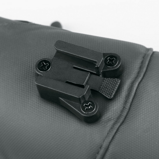 The small lightweight adapter is integrated discreetly under the saddle. Once mounted with two screws, the bag can be easily pushed onto the adapter. The saddle bag can be removed by simply pressing the lever.