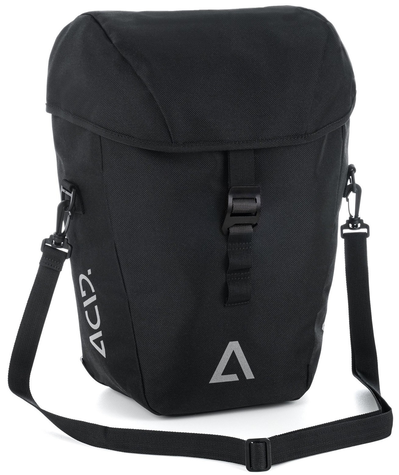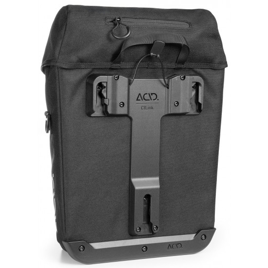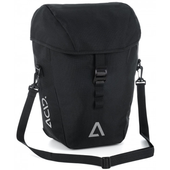 The abrasion-resistant ACID Pannier Bag CITY 15 CILink is ideal for everyday cyclists. The ACID CILink adapter system ensures quick and secure mounting on the ACID luggage carrier. It has a padded inner compartment and is also ready for use in bad weather thanks to the practical rain cover. Reflectors enhance visibility, and when it's time to park up, the bag can also be carried comfortably on foot thanks to the shoulder strap.