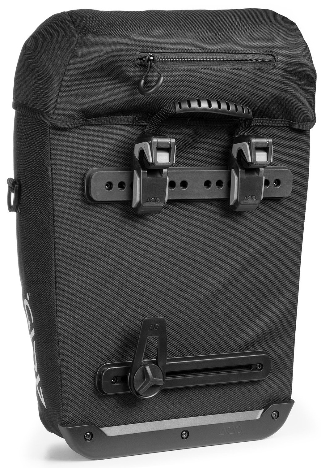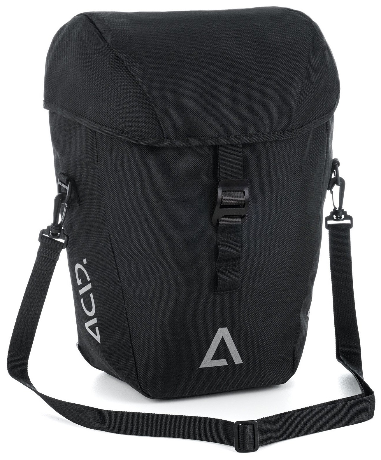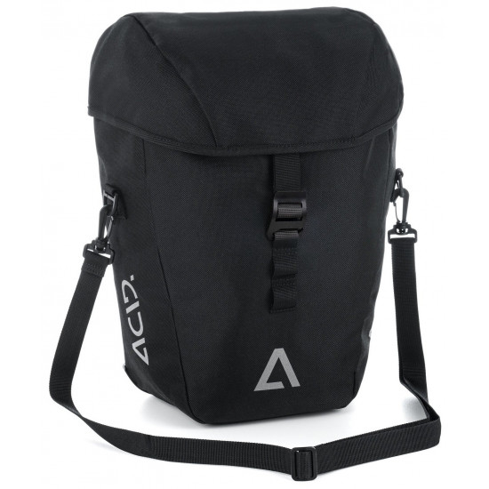 The abrasion-resistant ACID Pannier Bag CITY 15 SMLink 2.0 is ideal for everyday cyclists. The ACID SMLink 2.0 clip system ensures quick and secure mounting on various luggage carriers. It has a padded inner compartment and is also ready for use in bad weather thanks to the practical rain cover. Reflectors enhance visibility, and when it's time to park up, the bag can also be carried comfortably on foot thanks to the shoulder strap.