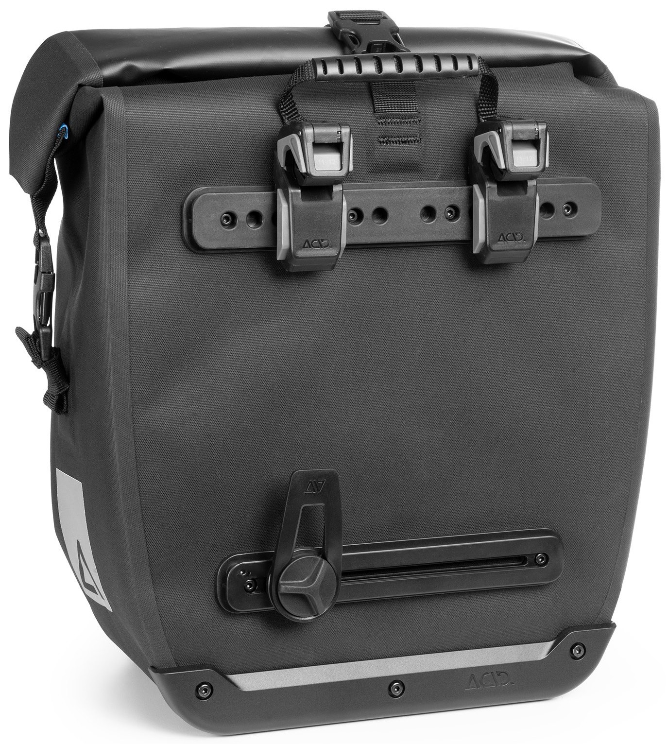The abrasion-resistant, waterproof ACID Pannier Bag PURE 15 SMLink 2.0 is ideal for everyday and touring cyclists who value durable products. The ACID SMLink 2.0 attachment system ensures quick and secure mounting on various luggage carriers. Reflective elements increase visibility in poor light conditions on the road. The large storage space offers enough room for shopping or other items. And when it's time to park up, the bag can also be carried comfortably thanks to the shoulder strap.