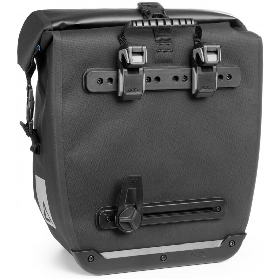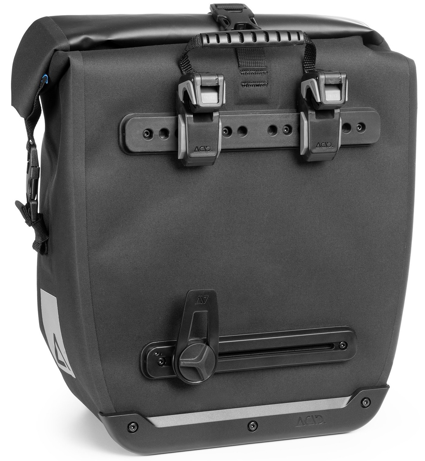 The abrasion-resistant, waterproof ACID Pannier Bag PURE 20/2 SMLink 2.0 is ideal for everyday and touring cyclists who value durable products. The ACID SMLink 2.0 attachment system ensures quick and secure mounting on various luggage carriers. Reflective elements increase visibility in low-light conditions on the road. The large storage space offers enough room for shopping or other items. And when it's time to park up, the bag can also be carried comfortably thanks to the shoulder strap.