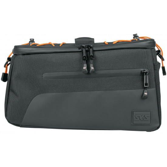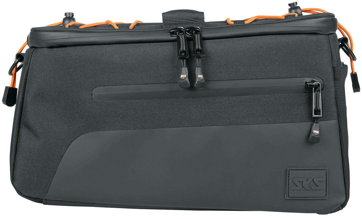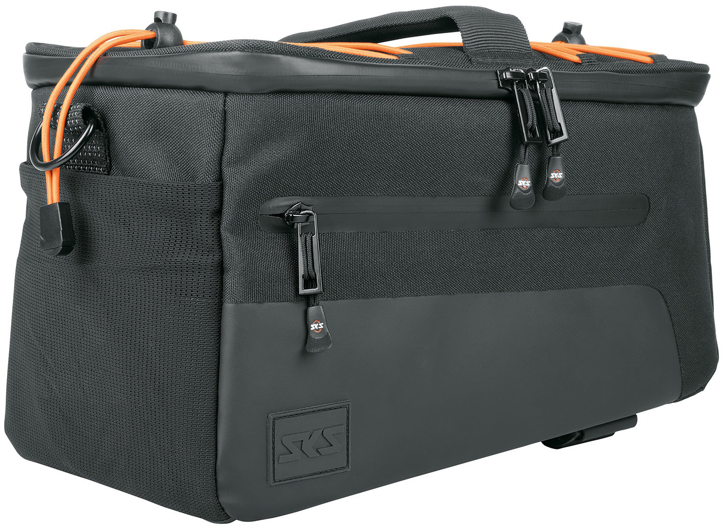 Robust, stylish, flexible: the SKS INFINITY URBAN TRUNKBAG made of water-repellent material is ideal for shopping, commuting and traveling. It fits perfectly on the INFINITY UNIVERSAL carrier, but can also be mounted on many others.On the one hand, the bike bag is compatible with the MIK, AVS, MonkeyLoad, Racktime, XLC CarryMore / i-Rack and KLICKfix adapter systems. The adapters are attached to the underside of the bag with screws, which means that you can easily use existing luggage rack plates. On the other hand, it can also be mounted with Hypalon Velcro straps that can be shortened. An additional strap can optionally be fixed to the seat post.
