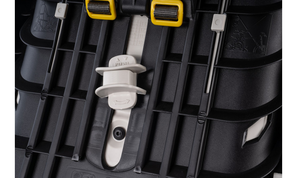Mounts on rear luggage carrier. Compatible with carriers conforming to ISO 11243 - 120 to 175 mm. Also fitting wider carriers -190 mm (E-BIKE: compatible up to 190 mm).