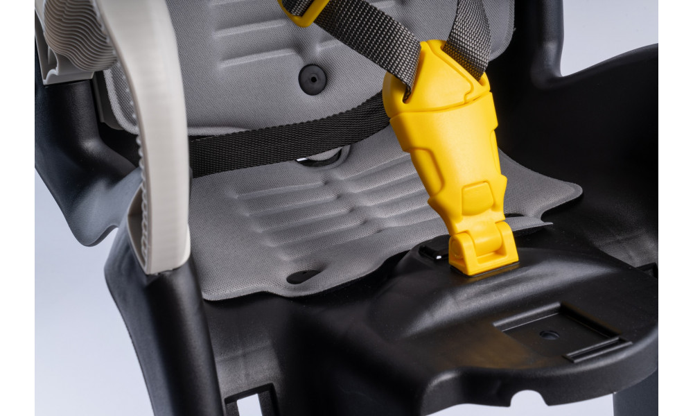 - Childproof, parent-friendly safety buckle with two depth settings in the centre of the seat. Only one hand needed to fasten and release