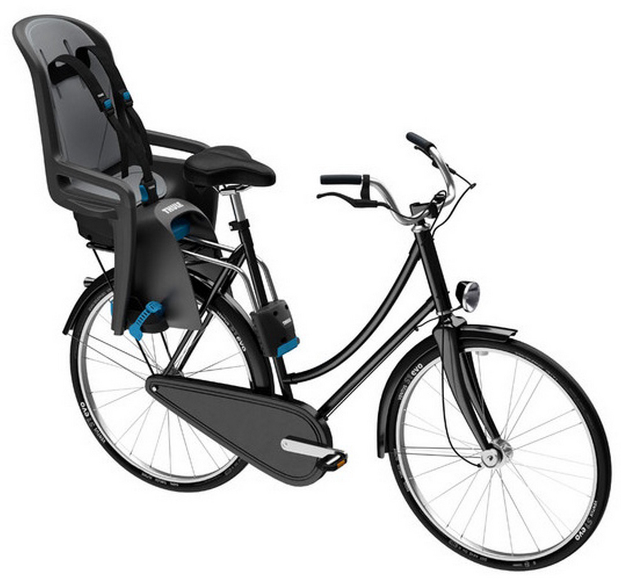 Classic, safe and easy-to-use reclining child bike seat, taking your daily commutes and family bike adventures to the next level.Seat can be mounted/dismounted from bike in seconds with the universal quick-release bracket, fitting most 26"-29" bicycles (27.2-40 mm diameter round frames and maximum 40 x 55 mm oval frames)Integrated protection wings safeguard your childs hands when the bike is leaned against a wallYour child rides safely with the adjustable 3-point harnessSmooth, comfortable ride for your child due to the DualBeam suspension system that absorbs road shockYour child is quickly and easily secured with a childproof safety buckle with large buttonsAdded visibility thanks to built-in reflector and safety light attachment pointEnsures a perfect fit as your child grows thanks to the single-hand adjustable foot rests and foot strapsDetachable, water-repellent padding is machine washable and reversible, offering two colour options.Designed and tested for children from 9 months to 6 years old, up to 22 kg.Comfortable for on-the-go naps with five different reclining options (up to 20°), easily adjusted using only one handWeight capacity: 22 kgWeight: 5 kgSafety harness: 3-pointMeets safety standardsKidsgo test win 2016 - Thule Ride AlongGS Mark Quality Seal for Thule product (GS Geprufte Sicherheit)Accessories for Thule RideAlong (not included, can be ordered separately):Thule RideAlong Quick Release BracketThule RideAlong Low Saddle AdapterThule RideAlong PaddingThule Delight