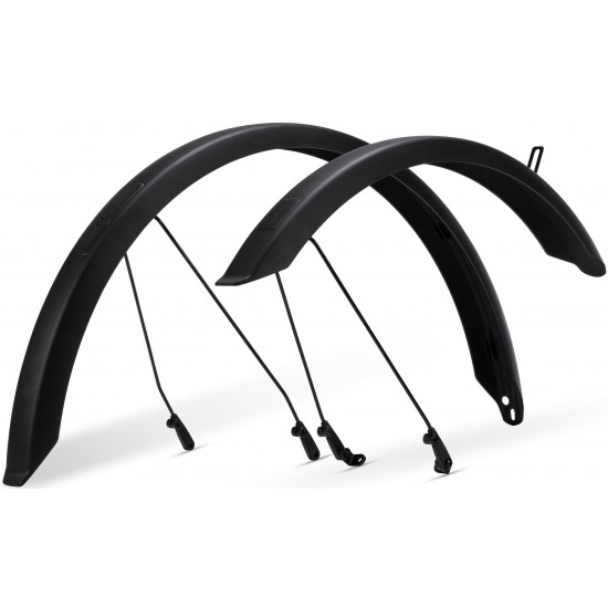 The acid rookie 55 24 mudguard set is compatible with the cube ella 240 and numove 240 with a maximum tyre width of 1.85In. This child-specific design features the exact same clever finishing touches as the adult versions: glossy finish icon details, the acid adapter system and the integrated lighting cable guide. The mudguards are compatible with our acid rear light integration technology. The set also includes stays.