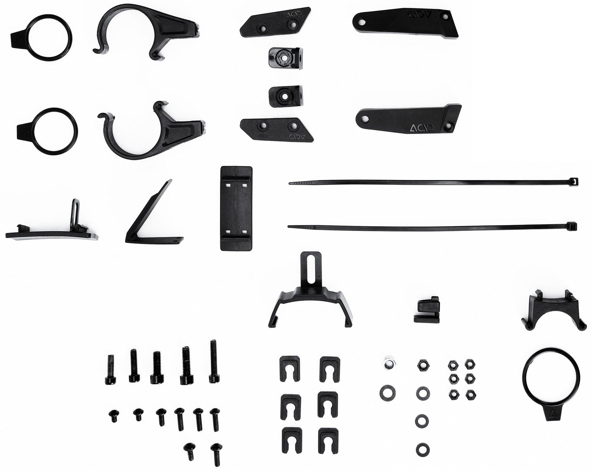 Whether you commute to work, school or hit the trails at the weekend, the ACID fender set will turn your bike into an absolute versatility wonder. It fits most 26in mountain bikes with a maximum tire width of 2.25in and has a special adapter solution for CUBE mountain bikes from model year 2020 and up - for installation in no time at all. Stylish and practical details such as the shiny icon details, the ACID adapter system or the non-flex shape round off the well thought-out package. The mudguards are compatible with our ACID luggage racks. BB-Mount: The mudguard is mounted to the Bottombracket. ST-Mount: The mudguard in short design is mounted to the seat tube with an adapter.
