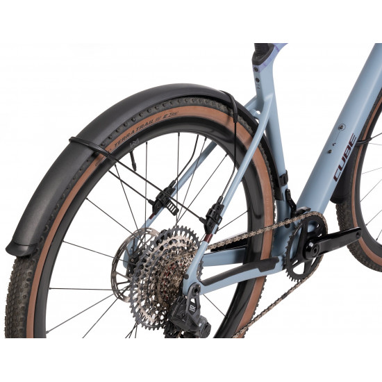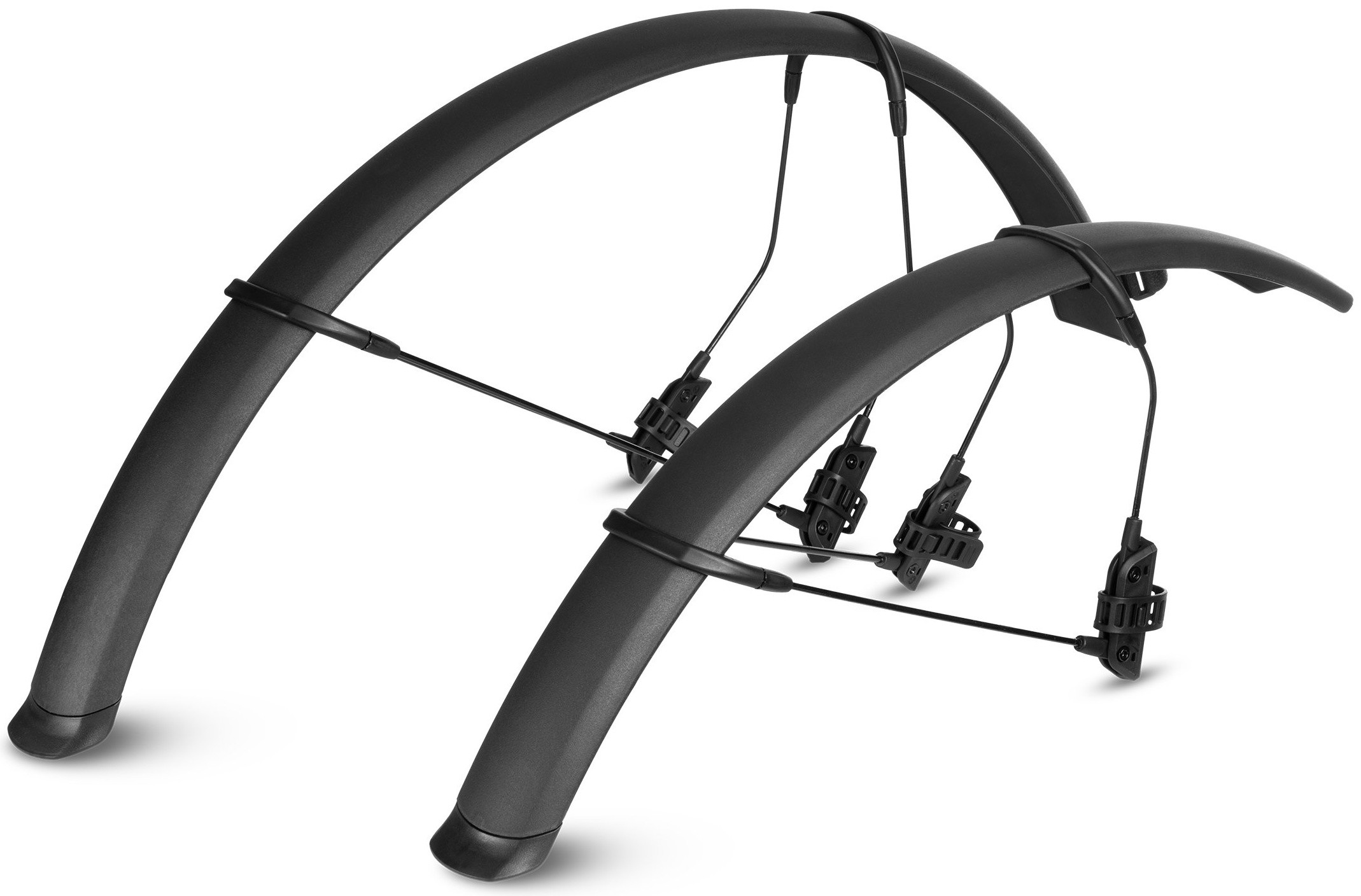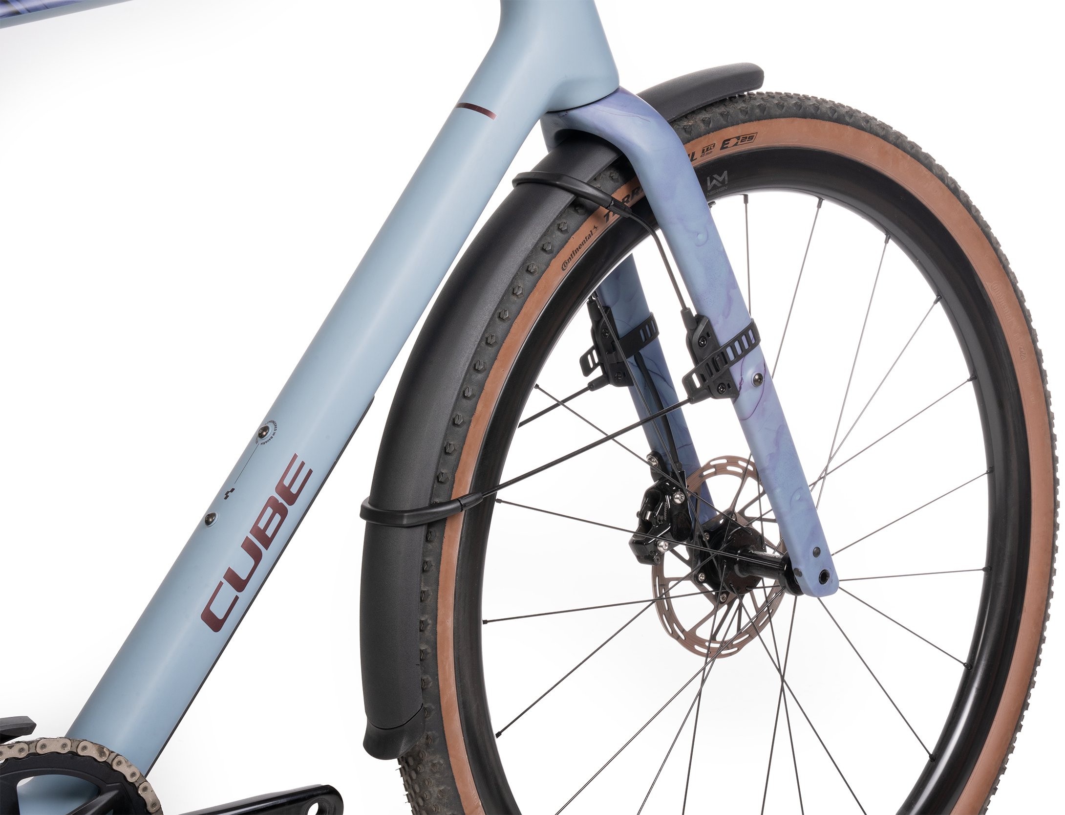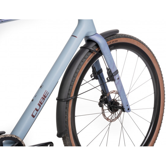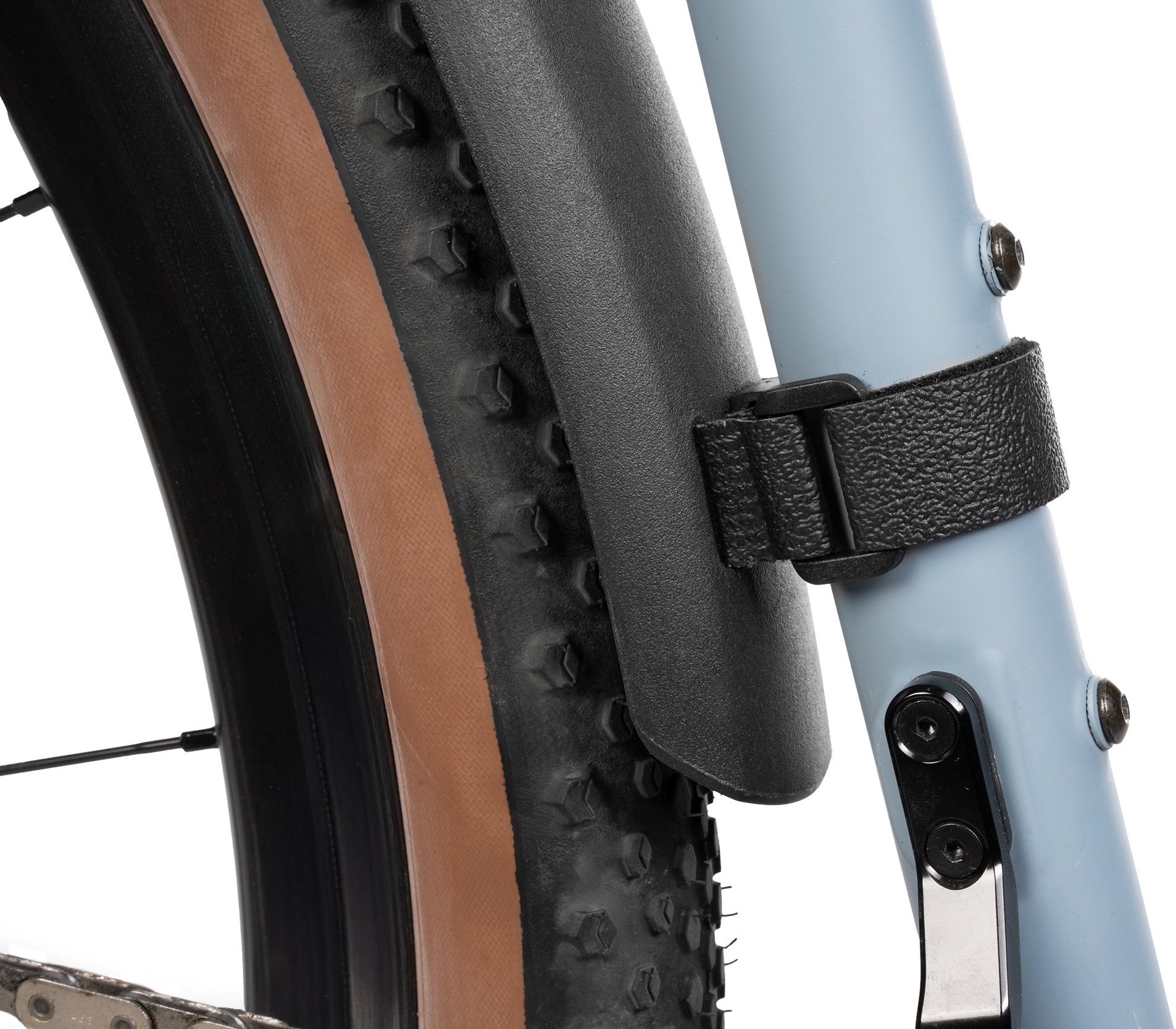 The ACID Clip-On Mudguard Set GRAVEL 28" is specially designed for gravel bikes with 28in wheels. It offers reliable protection against dirt and water for tyre widths up to 2in. Installation is tool-free, using flexible rubber straps to attach the mudguards to the seat stays, seatpost and fork. After the initial set-up, the mudguards can be quickly mounted and removed as needed. The two-piece rear mudguard features a removable, rubberised splash guard and glossy icon details. Durable materials ensure high stability and a long lifespan – even under demanding use on unpaved roads.