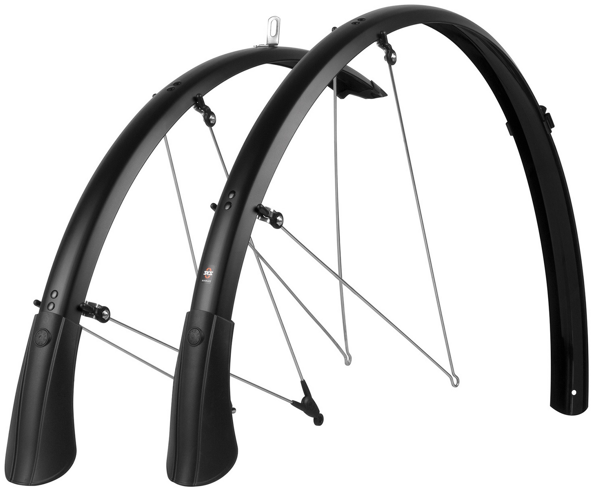 High-quality composite mud guard set for front and rear wheel. Assembly accessories made of stainless steel. Safety clip ASR on front guard. High protection against corrosion and resistance to UV rays. Light in weight but robust and strong. Perfect choice for your 28" hybrid or trekking bicycle.