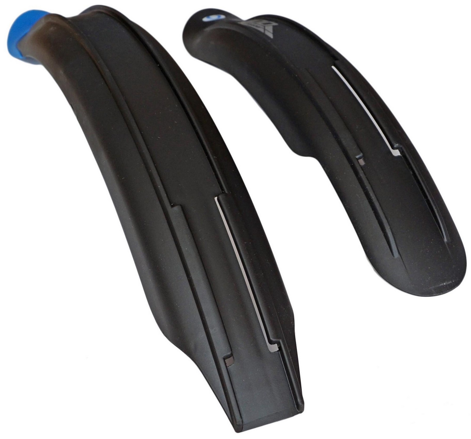 Simpla Kido muguards for children's bicycles are made from quality firm plasticDesigned for 20" wheelsWith rubber mudflap on rear mudguardMudguard has reflective logo "Simpla"With mounting parts - screws and retaining platesWidth: 65 mmWeight: 210 gColor: Black with blue mudflap (rear)