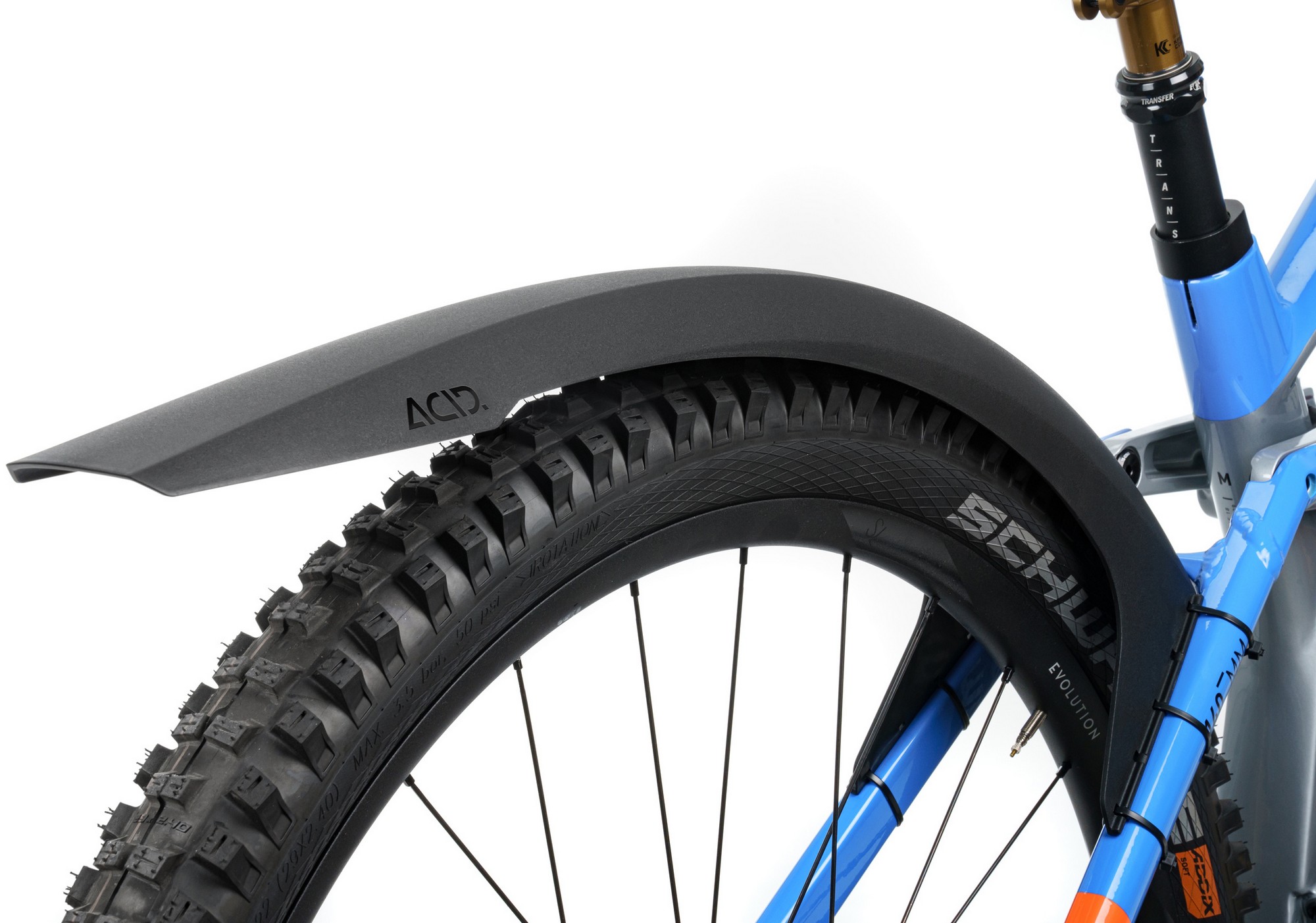 Don't let rain and mud slow you down. With the ACID Mud Blocker for your rear wheel, full-gas trail riding knows no limits. An extra spray protection lip stops the dreaded skunk stripe on your back. Comes with 6 cable ties for the perfect hold and an optimised design with elongated sides for maximum stability. The included protection foils effectively keep frame scratches at bay.