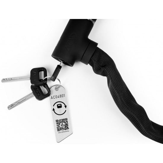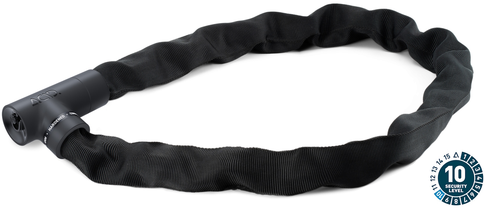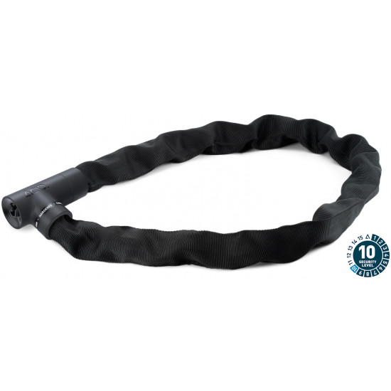 The extra-secure chain lock in our solid k range is virtually noiseless yet incredibly sturdy with a tear-resistant, hard-wearing textile sleeve. With 360° of rotation, the easy entry lock body is incredibly simple to use, while the protective cap keeps the lock mechanism protected against water and dirt ingress. The cone+ closure reduces the risk of theft further and makes locking and unlocking a cinch. Grip+ surface technology ensures maximum grip. A rubberised surface prevents corrosion and protects your frame against scratches.