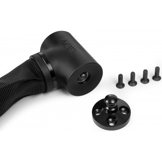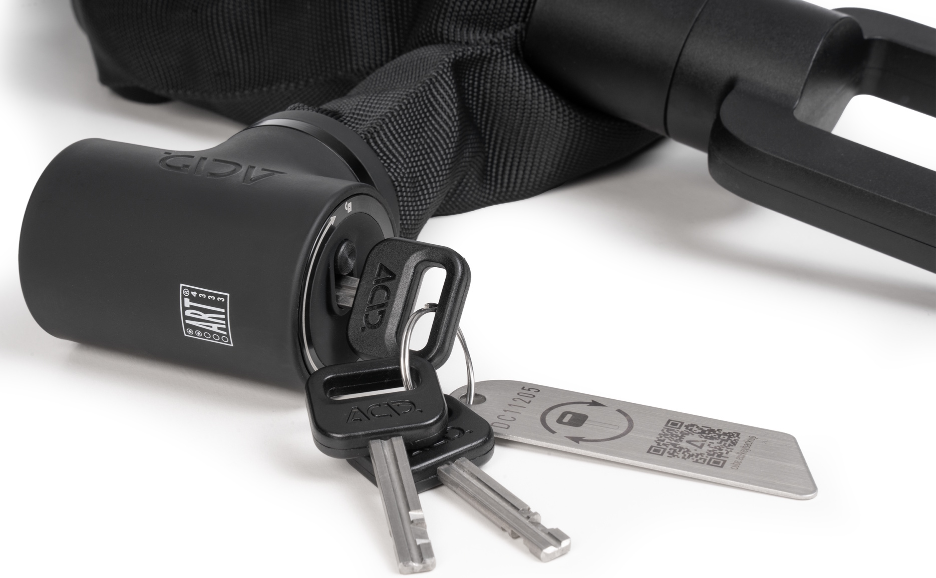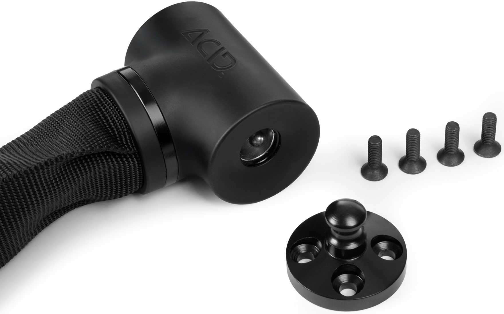 The SOLID PRO K120 Cargo chain lock offers an exceptionally high level of security and is ART2-certified. The extremely robust chain is completely enclosed in a tear-resistant and durable textile sleeve, which dampens noise during transport. The lock can be directly attached to the CARGO frame interface and allows for effective use of the entire chain length for securing to fixed objects, thanks to the integrated loop guide. A protective cap reliably prevents the ingress of water and dirt into the locking mechanism. Soft plastic surfaces protect the bike frame from scratches and the mechanism from corrosion.