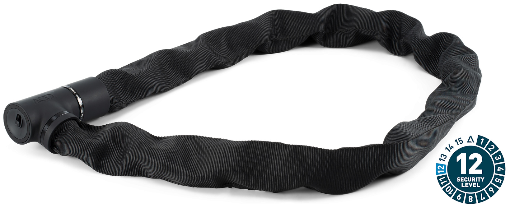 The K120 SL extra-secure chain lock is virtually noiseless yet incredibly sturdy with an extremely tear-resistant, hard-wearing textile sleeve. ART2 certification attests to the high security level for peace of mind when leaving your bike unattended. With 360° of rotation, the EASY ENTRY lock body is incredibly simple to use, while the protective cap keeps the lock mechanism protected against water and dirt ingress. The CONE+ closure reduces the risk of theft further and makes locking and unlocking a cinch. GRIP+ surface technology ensures maximum grip. A rubberised surface prevents corrosion and protects your frame against scratches.