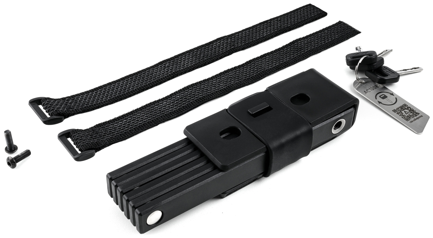 The high-security RIGID 80 PURE folding lock is constructed from high-performance, hardened stainless steel and is certified as meeting the rigorous ART1 theft-prevention standard. A strong spring-loaded bolt makes it incredibly easy to use and close securely. The slim, elegant design doesn't just look good it also shaves weight from the 80cm folding lock to make it practical. Fits to virtually any bike. A low-profile side-opening bracket is simple to screw on in a range of positions or attach using the anti-slip touch fastener. Premium-quality materials and precise workmanship will fend off the most determined theft attempts and stand up to extreme weather conditions. Perfect protection, wherever you are.