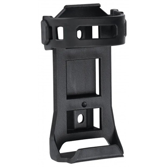 - Bracket can be mounted on bottle holder pivots or with velcro strap on the frame