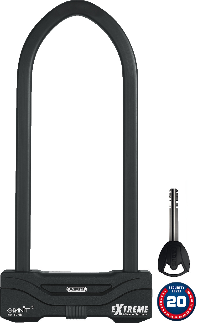 The 16 mm thick, double-bolted square parabolic shackle of the ABUS GRANIT Extreme 59 provides reliable protection and makes life hard for thieves.