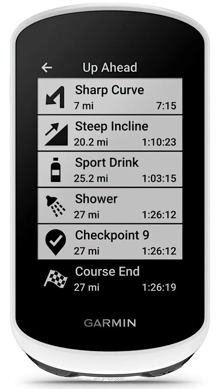 - Cycling Features: Courses, Alerts (triggers alarm when you reach goals including time, distance, heart rate or calories), Compatible with Varia radar (rear-facing radar), Compatible with Varia Radar Camera, Compatible with Varia lights, Compatible with Varia headlight camera, Power meter compatible, On-device course creator, On-device location search, TopoActive Maps - Cycling, Trendline Popularity Routing - Cycling, Popularity heatmap, eBike Smart range routing