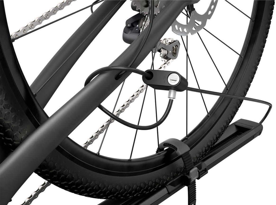 Easily mount standard Quick-release bikes (9 mm). Fits Thru-axle bikes (9-15mm) and 20x110mm Thru-axle bikes with additional adapters Accommodates bikes with disc brakes Safe mounting of Quick-release bikes thanks to Thule AcuTight torque limiter knob that click when optimal torque is reached Convenient and easy installation of fork adapter for a secure bike fit The fork mount rack is easy and safe to mount thanks to audible and visual confirmation of correct mounting Locks the bike to the bike rack and the bike rack to the roof racks Easy to switch carrier position from one side of your car to the other Adjustable protective wheel strap holds the rear wheel securely in place Mounts to all Thule rack systems, round bars and most factory racks Load capacity: 18 kgDimensions: 135 x 22 x 9.2 cmWeight: 3.3 kgFits round frame dimensions: All Fits maximum oval frame dimensions: All Max tire width: 3" Max wheel size (diameter): 29" Max wheelbase: 1250 mm Thru-axle compatible (Adapter/s required - NOT INCLUDED: Thule FastRide 9-15mm Axle Adapter Kit, Thule FastRide and TopRide Thru-Axle Adapter 20x110 mm)Carbon frame compatibleCarbon fork dropout compatibleFits roof racks with 20x20 mm T-tracksFits roof racks with 24x30 mm T-tracks (Adapter/s required - NOT INCLUDED: Thule T-track Adapter 889-3)Fits Thule WingBar Evo, WingBar, ProBar, SquareBar, SlideBarOne Key System compatible