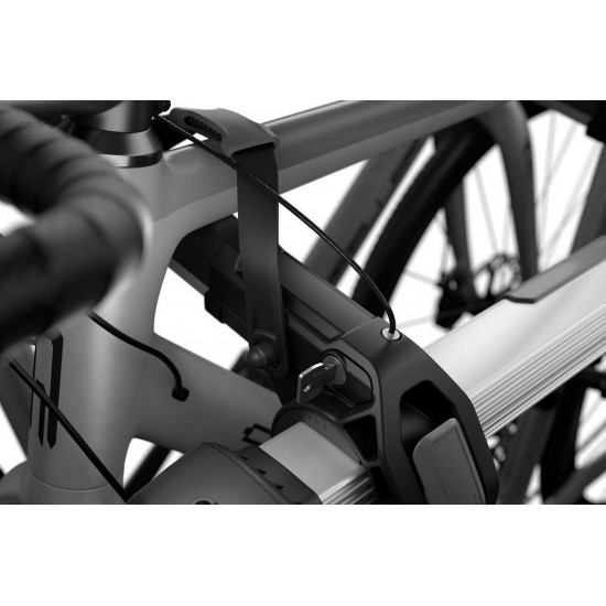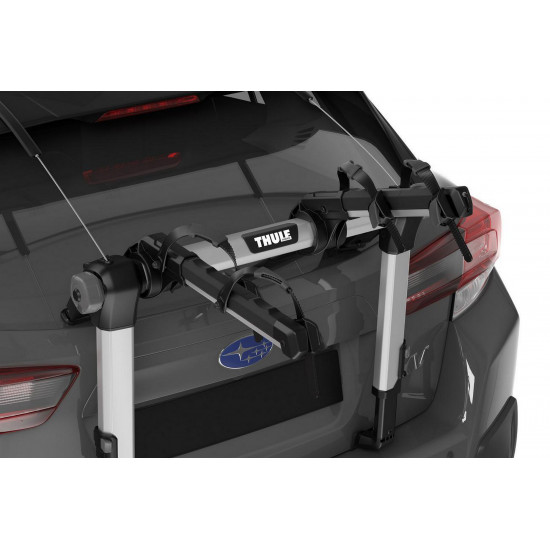 Maximum fastening security to your vehicle with steel cables Quick and easy mounting to car thanks to simple user interface and intuitive torque limiting tightening system Firm carrier hold and vehicle protection with twin hook attachment and rubber protection pads Bike protection and security with soft cradles that absorb road shock and vibrations Vehicle and bike protection with integrated anti-sway system that prevents bike-to-bike and bike-to-vehicle contact Accommodates a variety of bike frames/geometries including smaller kids bikes with thanks to adjustable bike arms Locks the bikes to the bike rack and the bike rack to the car (locks included) Bike arms fold down when not in use, and rack folds flat for easy transport and convenient storage Easy to assemble with included tools Possible to open vehicle trunk without any mounted bikes This product does not have a universal fit. Please use the Thule Buyer's Guide for information related to specific car models Max number of bikes: 2 Load capacity: 30 kgMax bike weight: 15 kgDimensions: 62 x 78 x 78.5 cmFolded dimensions: 24 x 78 x 53 cmWeight: 8.3 kgFits all standard frame dimensionsDistance between bikes: 18 cmCarbon frame compatibleRear lights and number plate are not visible with bikes mounted (required number plate / lightboard adapter - NOT INCLUDED)One Key System compatibleLockable bike-to-rack and rack-to-vehicle