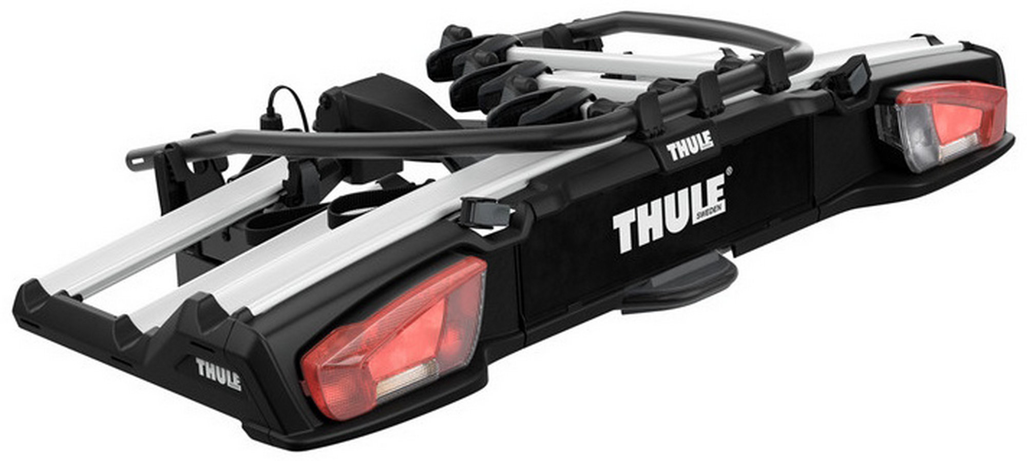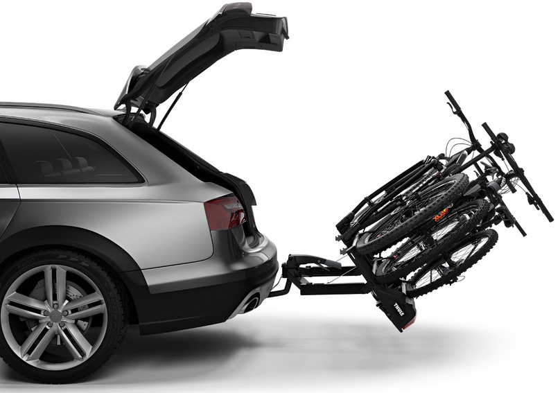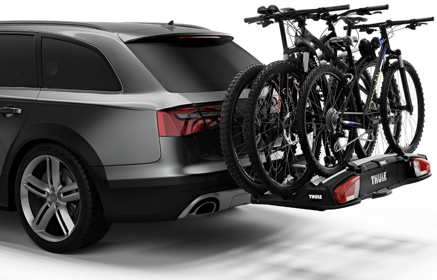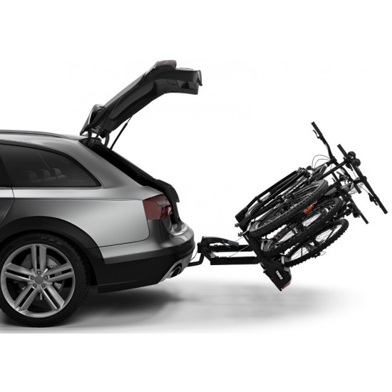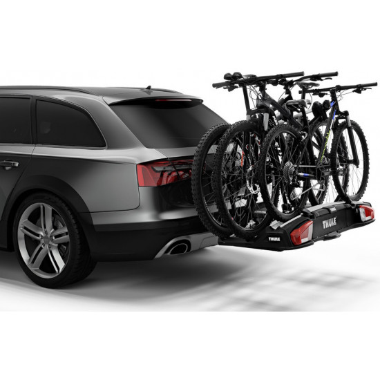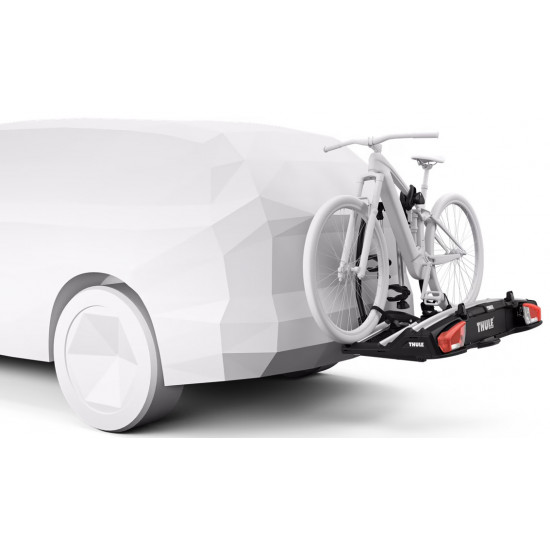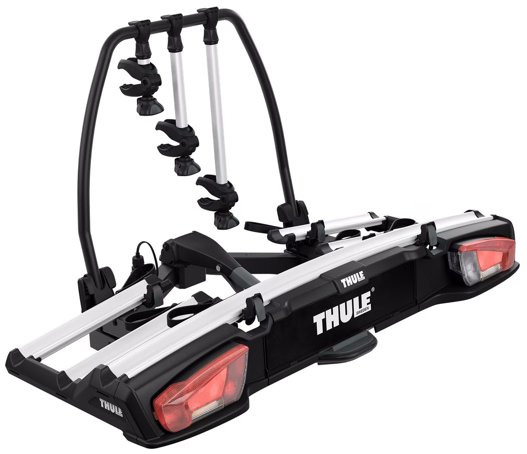 The versatile bike rack for all types of bikes from e-bikes and fatbikes to small childrens bikes.High load capacity enabling transport of e-bikes and heavy mountain bikesPossible to increase the load capacity to 4 bikes by adding Thule VeloSpace XT Bike AdapterExtra-long wheel trays enabling transport of large bikes (up to 1300 mm wheelbase).Adjustable pump buckles with extra-long wheel straps for easy fastening of wheels (up to 4.7" wheels) enabling transport of fat bikesEasy mounting of bikes through detachable bike arms with Thule AcuTight torque limiter knobs that click when optimal torque is reachedEasy mounting and adjustment of the bike rack before closing the tightening handle, thanks to the towbar couplings initial stabilityEasy trunk access with bikes mounted, thanks to smart foot pedal tilt. Even very large rear doors can be opened due to wide tilt angleLock your bikes to the bike rack and your bike rack to the towbar (locks included)Combine with Thule BackSpace XT to create an all-round cargo carrier, giving the car 300L of easily accessed, extra loading spaceIMPORTANT: Please check compatibility before buying - https://www.thule.com/en-gb/gb/buyers-guideMax number of bikes: 3 (4 when using adapter)Load capacity: 60 kgMax bike weight: 30 kgSize: 135 x 73 x 79 cmFolded dimensions: 135 x 73 x 31 cmWeight: 20.6 kgFits frame dimensions: 22-80 mmDetachable frame holdersDistance between bikes: 19 cmCarbon frame compatible (Adapter/s required: Thule Carbon Frame Protector)Wheel mounting on adjustable holders: Pump bucklesTilt function (with bikes)Fits cars with exterior spare tyreRear lightsPower connector: 13-pinOne Key System compatibleLockable bike-to-rackLockable rack-to-vehicleAccessories for Thule VeloSpace XT 3 (not included, can be ordered separately):Thule VeloSpace XT Bike AdapterThule Loading Ramp XTThule BackSpace XTThule BackSpace XT 4th Bike ArmThule Transport WheelThule VeloSpace XT 3-Bike Spare Wheel AdapterThule Carbon Frame ProtectorThule XXL Fatbike Wheel StrapsThule Bike Frame AdapterThule Adapter 9906Thule Wheel Strap LocksThule One-Key System 4-pack