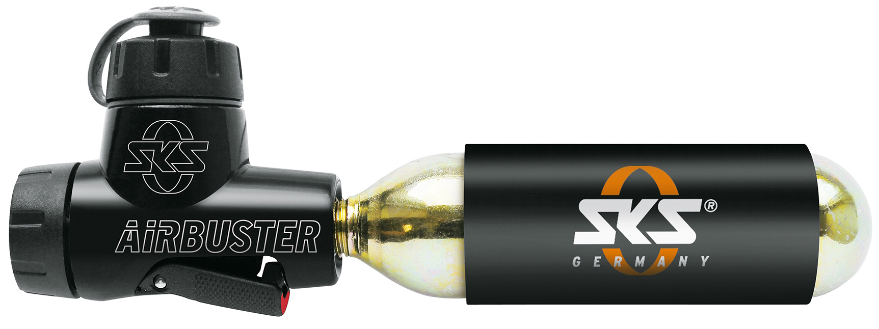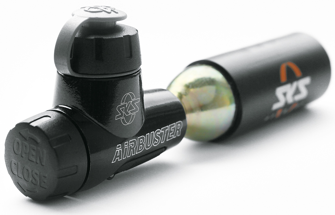 The new AIRBUSTER is the ultimate CO2 solution. The CO2 pump consists of an aluminium housing with an integrated pressure control regulator to help user release just the right amount of air. Dust protection cap keeps internals clean. Compatible with 16 g and 24 g threaded CO2 cartridges, SKS cartridges feature insulation protection. Airbuster includes a replacement 16 g cartridge and 2-point pump holder. Incl. water bottle clip.