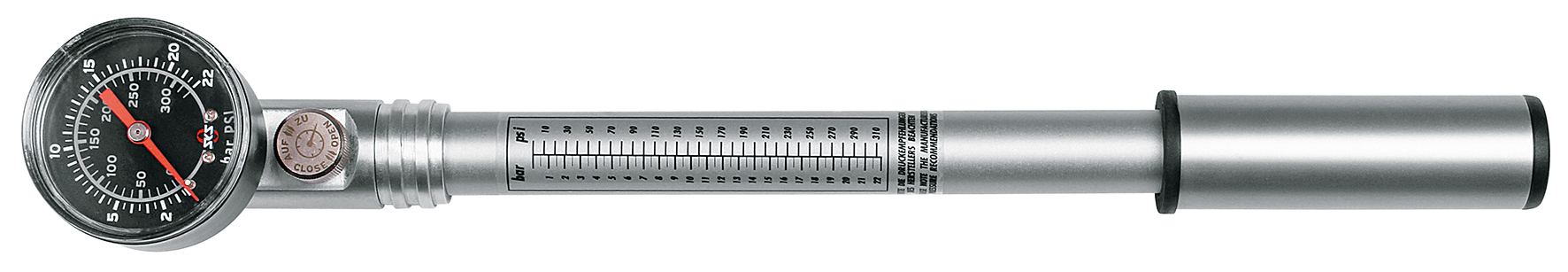 - Precision gauge with 0,2 bar division