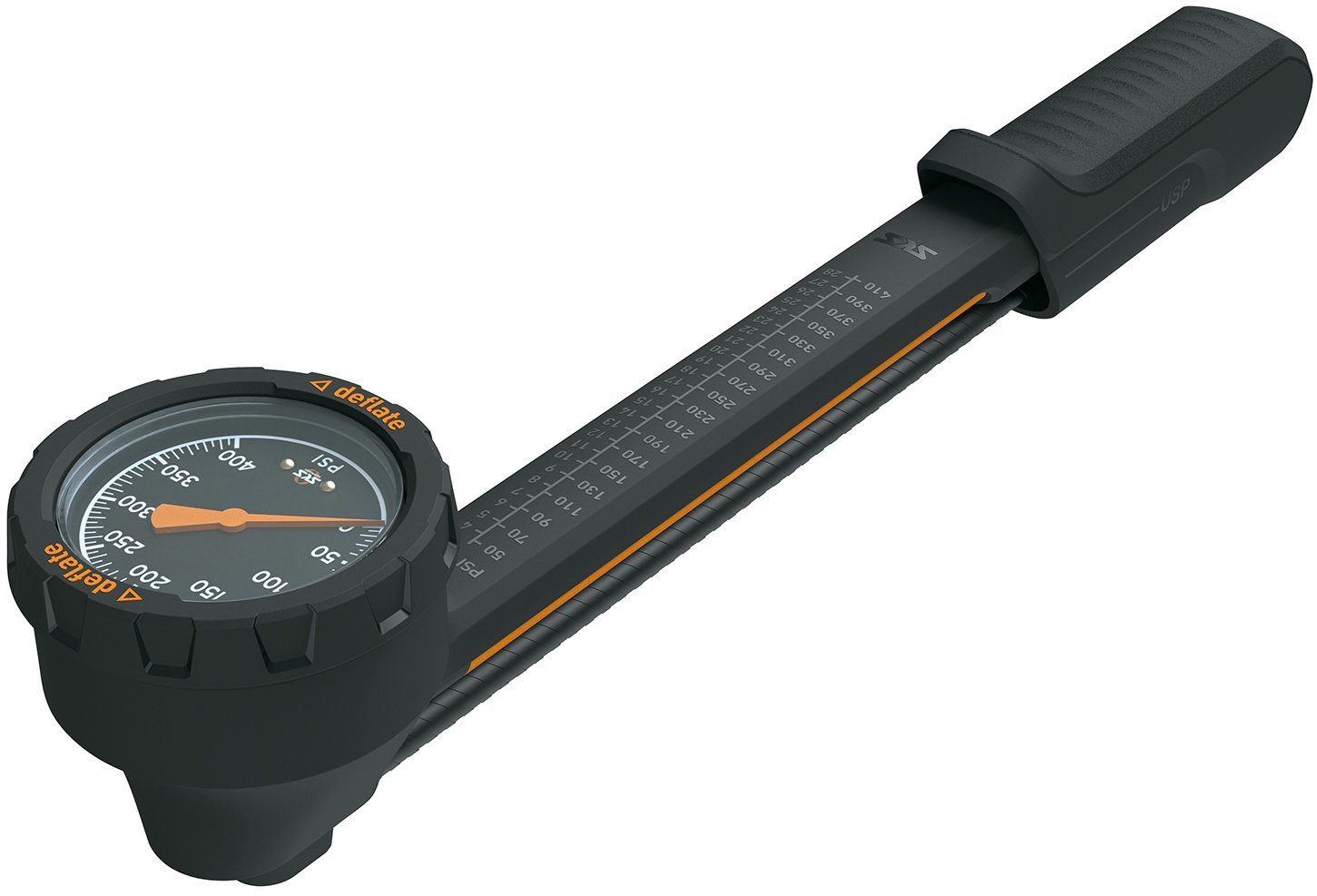 With the robust shock pump from SKS, you can quickly check and adjust this. Thanks to the rotatable EPDM hose, the suspension elements can be reached flexibly. A two-stage sealing system prevents air loss when mounting and dismounting. You can easily read your air pressure on the extra-large pressure gauge. If you need to release some air, the patented pressure release function allows you to do so with pinpoint accuracy - all you have to do is turn the pressure gauge ring.