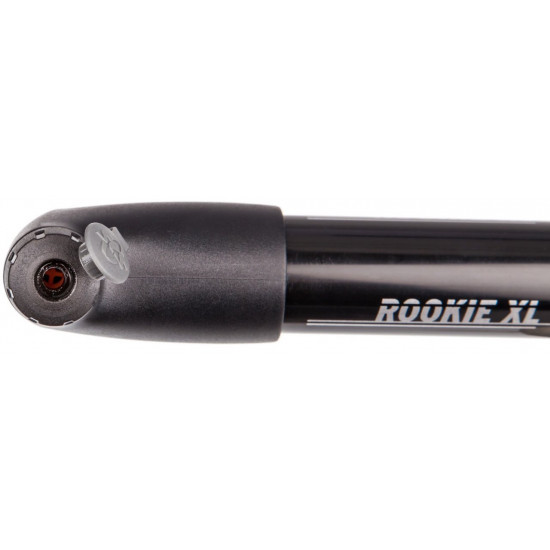 The Rookie XL plastic mini pump provides lots of volume per stroke because of its O-ring technology and the wide barrel diameter. It is especially develpped for trekking and mountainbikes. The Rookie XL is completely dust protected and has a reversible valve for all kinds of valves. Clips and security rubbers are included for rough riding.