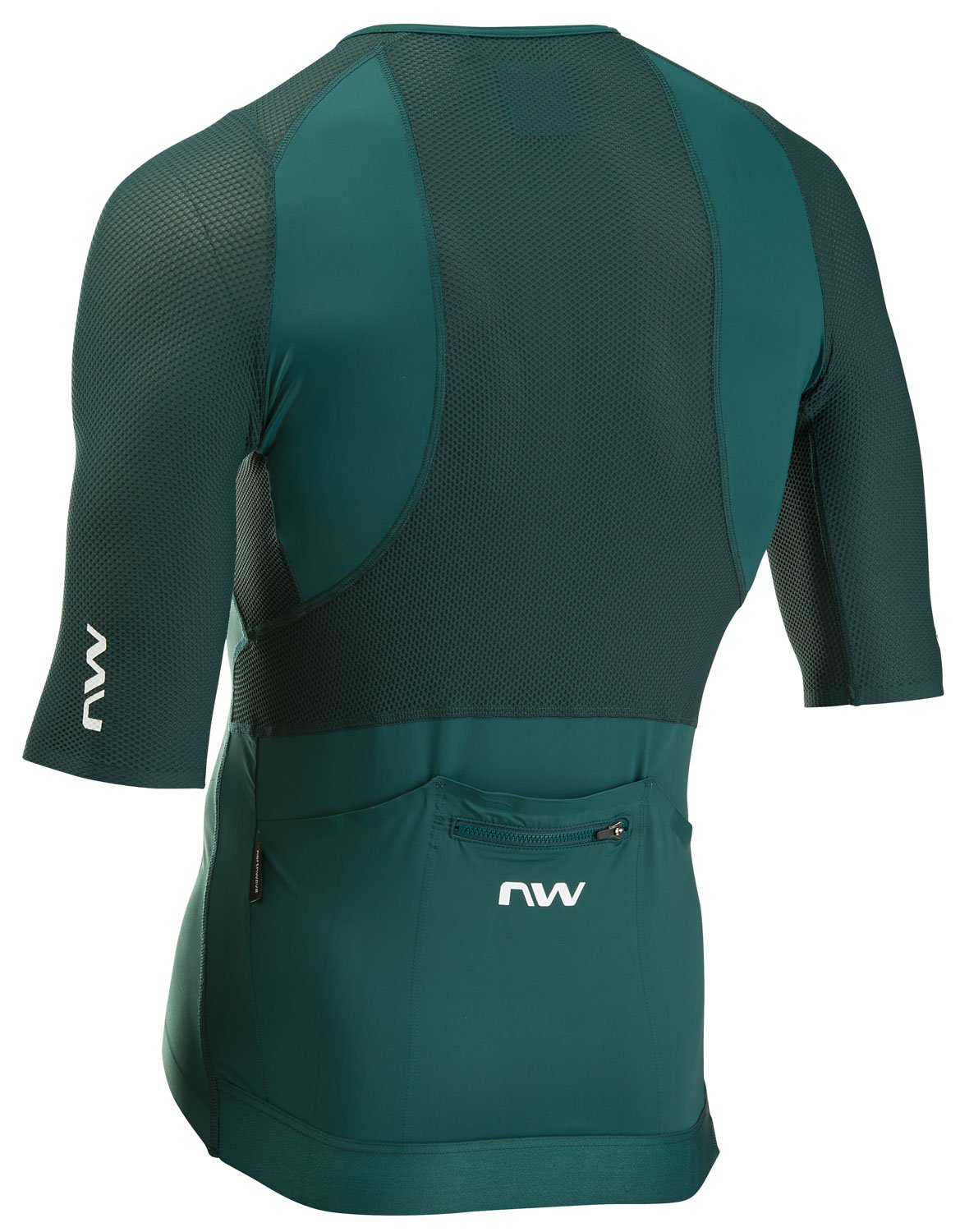 Northwave Extreme Rock jersey, with mesh panels are placed where the jersey overlaps the backpack to maximize breathability. Contrast stitching is a detail that attests to its distinctiveness. Dyed fabric with upf50+ protection and heat-sealed seams at the front hem and sleeve hem give the design a functional, uncluttered flavor with invisible but essential details. Three large back pockets with heat-sealed seams at hem.