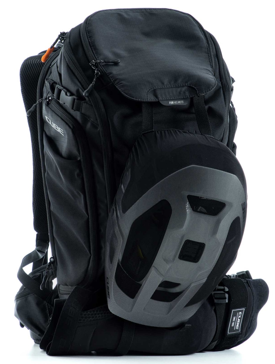 From alpine crossings to multi-day adventures, the CUBE ATX 30 has masses of packing space and is the biggest backpack in our collection. An optimal fit is courtesy of CUBE's own Natural Fit back system developed in-house and padded hip straps. Weight is distributed comfortably, while good padding and ventilation keep your back feeling fresh. The versatile MOLLE system also makes it easy to securely attach the CUBE GEAR BAG 1 using touch fasteners for some practical extra storage. And side compression straps mean you can squash down the volume on the days where you're carrying less gear. Well-designed compartments, two tool compartments and a side pocket for your smartphone keep the most important items within easy grasp. And with a hydration pack compartment and rain cover thrown in, it genuinely has it all!