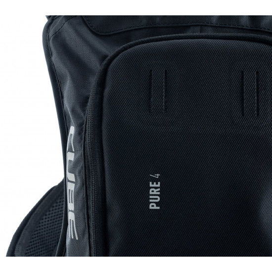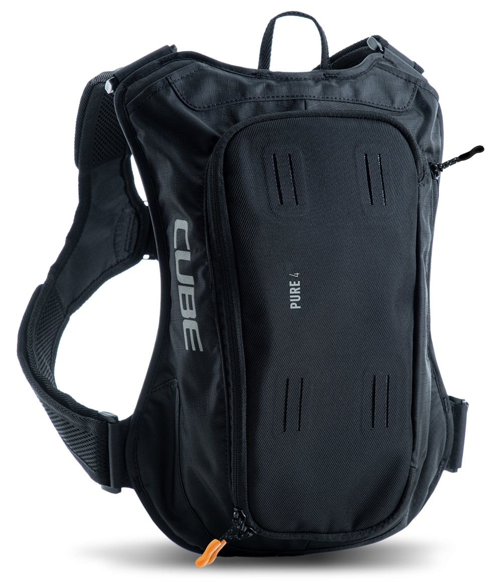 Small and smart: the PURE 4 has everything you need from a backpack and nothing you don't. We pared it back to the essentials you'll need on shorter tours without having to carry extra weight. It's hydration system-compatible with outlets on both sides for the drinking tube, while mesh pockets in the main compartment keep everything neatly organised and are great for stashing bars, multi-tools and other small items. A side zip pocket keeps your smartphone or other essentials safe and within easy reach. We also incorporated our X-Shape shoulder system that fastens across the chest, so the backpack stays comfortable and stable without cutting into your stomach, leaving you to breathe freely while you sweat the climbs or rail the trails. The backpack also features the versatile MOLLE system, so it's easy to securely attach the small CUBE GEAR BAG 1 using the integrated touch fasteners for practical extra storage.