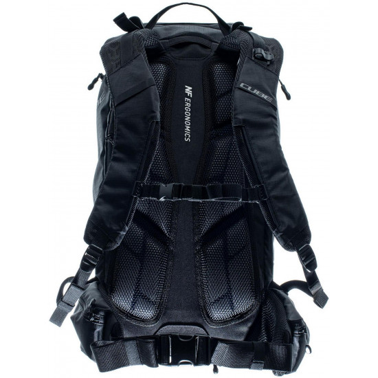 Enduro fans listen up! The vertex 16 is our high-class backpack that's absolutely rammed full of practical features. An optimal fit courtesy of ergonomic shoulder straps, hip straps and cube's own nf ergonomics back system developed in-house adds up to a backpack that stays put no matter how hard you shred. We also added padding and ventilation so your back stays comfortable and fresh. The vertex 16 includes a sas-tec lb-l protector weighing in at a feather-light 150 g. We also included a protector strap, helmet carrier, goggle compartment and rain cover for maximum practicality. Internal compartments, a hip pocket, a smartphone pocket and two side tool compartments keep everything organised while you session the trails. And we also made it hydration system-compatible because that's how we roll! What's more: instead of a standard black lining, we used a contrasting colour to make it easier and faster to find what you need.