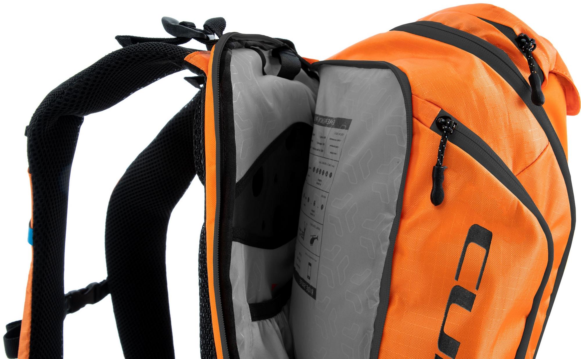 Enduro fans listen up! The vertex 16 x actionteam is our high-class backpack that's absolutely rammed full of practical features. An optimal fit courtesy of ergonomic shoulder straps, hip straps and cube's own nf ergonomics back system developed in-house adds up to a backpack that stays put no matter how hard you shred. We also added padding and ventilation so your back stays comfortable and fresh. The vertex 16 includes a sas-tec lb-l protector weighing in at a feather-light 150 g. We also included a protector strap, helmet carrier, goggle compartment and rain cover for maximum practicality. Internal compartments, a hip pocket, a smartphone pocket and two side tool compartments keep everything organised while you session the trails. And we also made it hydration system-compatible because that's how we roll! What's more: instead of a standard black lining, we used a contrasting colour to make it easier and faster to find what you need.