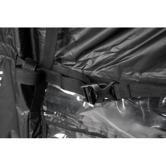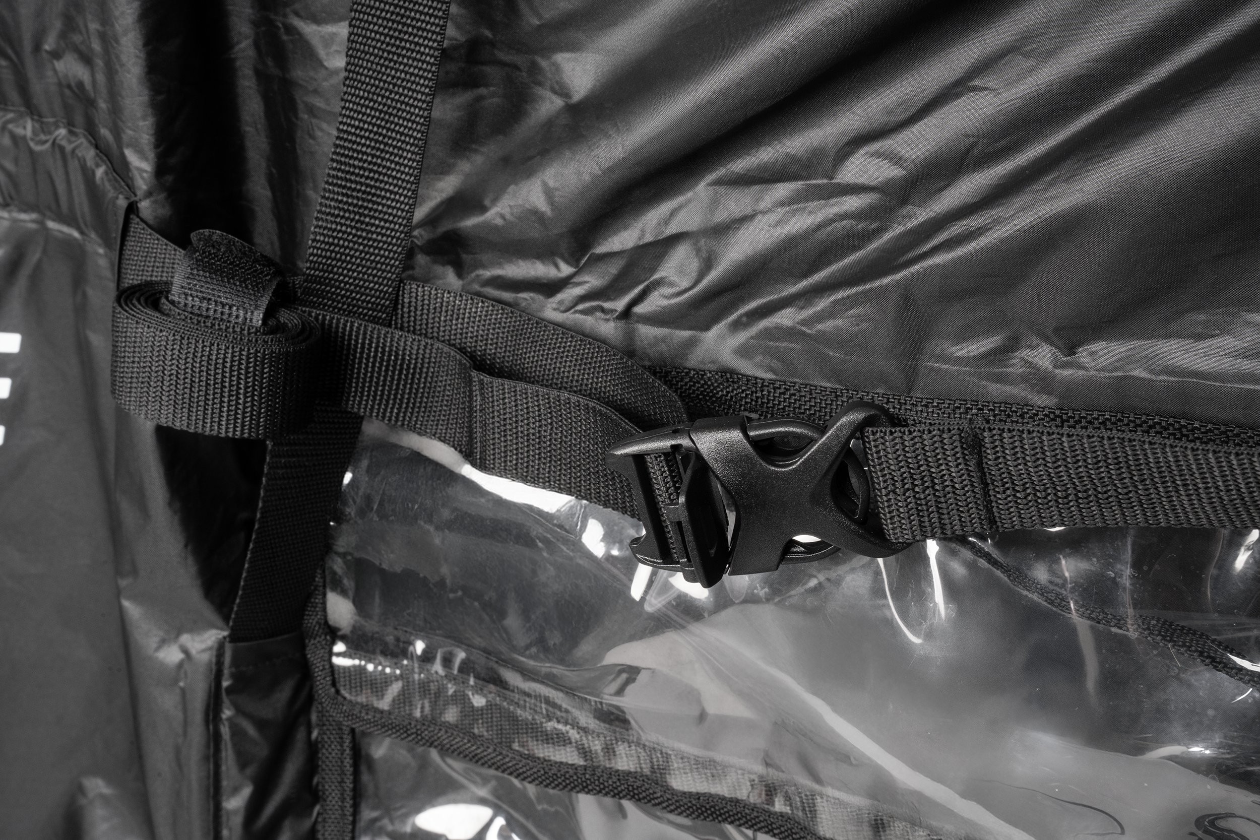 The CUBE transport cover reliably protects up to two bicycles from dirt, water and weather conditions on a car bike rack. After use, it can be stored compactly in the integrated storage bag. The integrated pocket for a warning sign adds extra safety and convenience. Durable materials and a well-engineered design ensure long-lasting durability with frequent use.