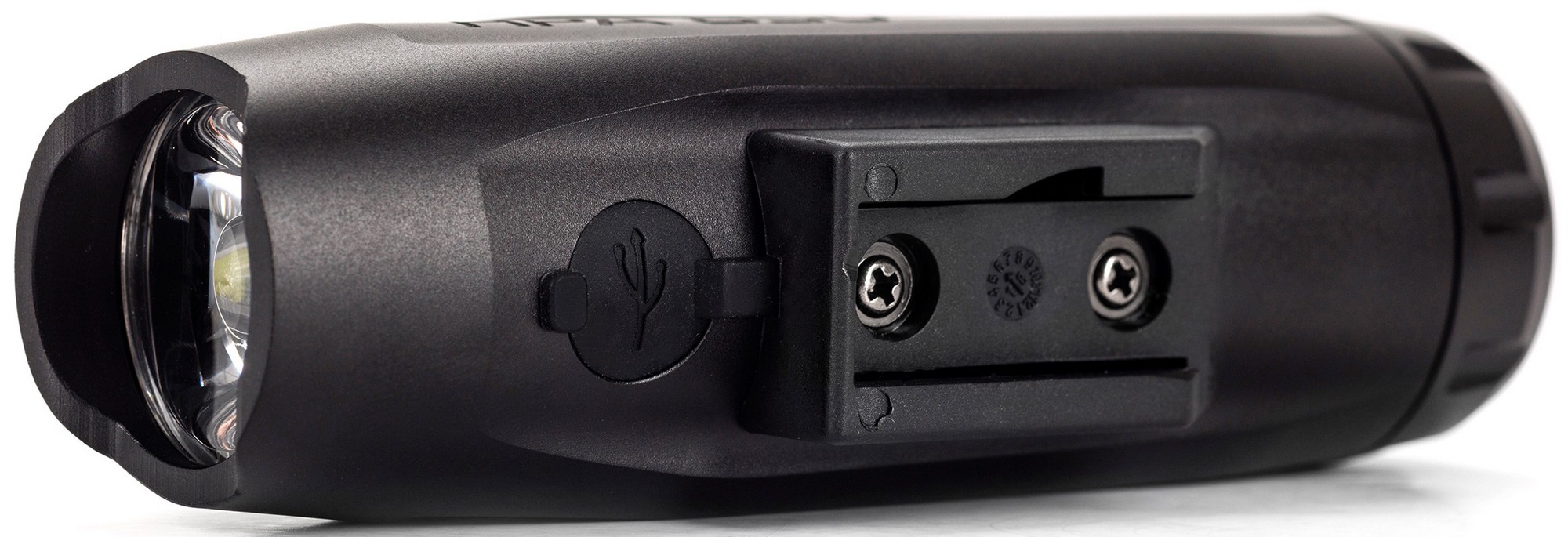 This LED light emits 850 lumens and includes a replaceable lithium-ion battery. Simple to recharge via USB. Featuring three light settings and a flashing mode for the perfect level of illumination. Fitting is easy and tool free using the Slide-Lock mounting system including helmet mount. Splashproof. Includes Micro-USB charging cable.