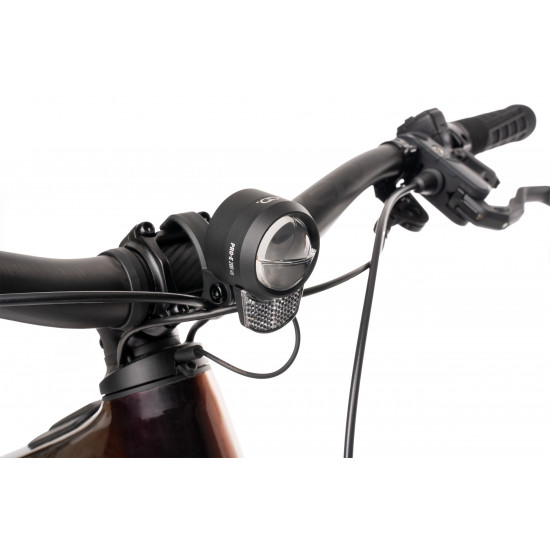 With a brightness of 150 lux/440 lumens in low-beam mode and 200 lux/700 lumens in high-beam mode, the ACID Front Light PRO 200 HB X-Connect ensures excellent visibility and illumination. The high-beam function is activated via a wireless remote and uses a newly developed convex lens. Additional features include a sensor-controlled day mode and three light modes that deliver an ideal balance of runtime and performance in any situation. The system operates on 12 V DC, making it compatible not only with the included 37 Wh power bank, but also with CUBE e-bikes featuring X-Connect technology. After a maximum runtime of 9.75 hours, the power bank can be fully recharged in just 3 hours using the included USB-C fast charger. With an IPX6 rating, the system offers reliable protection against water and dust. StVZO certification and a comprehensive range of accessories complete this high-performance lighting package.