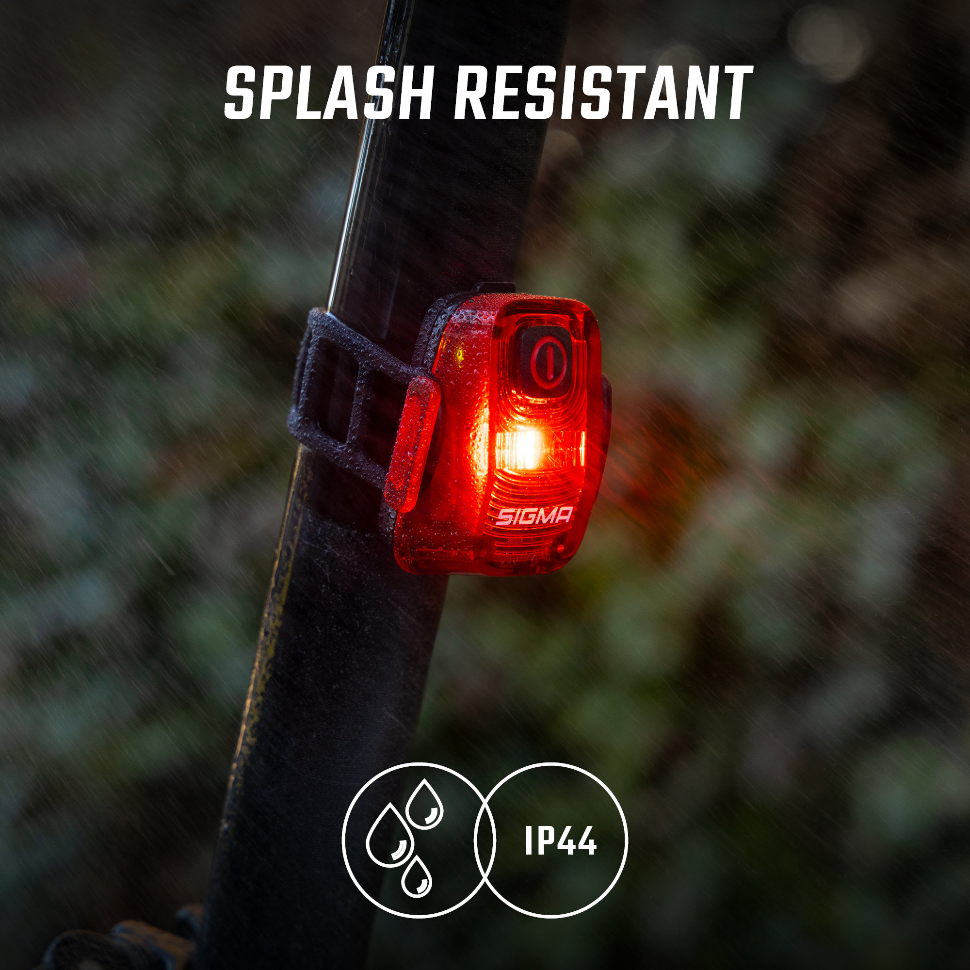 - Splash resistant: IP44
