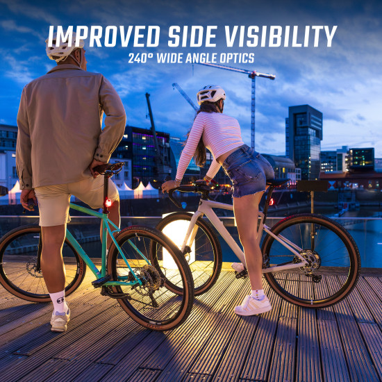 - VISIBLE FROM ALL SIDES The HIRO 10 ensures that you are also clearly visible from the side. The rear light shines at a 240 degree angle and makes you even more visible. An important safety feature, especially in city traffic.