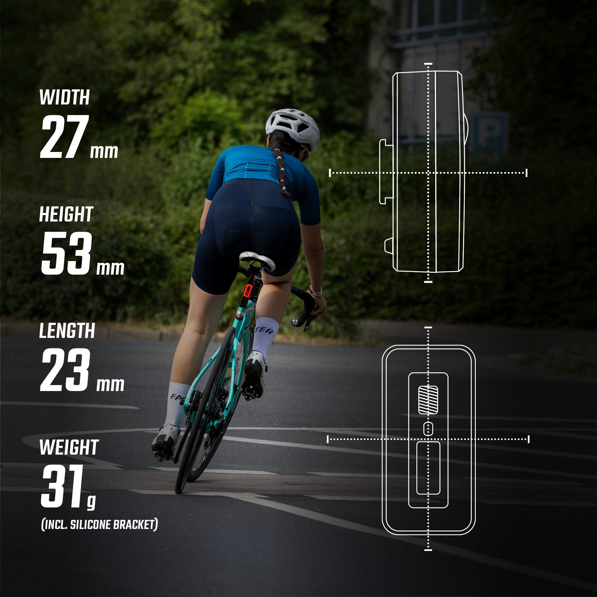 When it comes to safety, every detail counts. The HIRO 70 is more than just a rear light – its your reliable companion in any weather, any time of day. Its compact design blends discreetly into the overall look of your bike, while the powerful, evenly distributed light guarantees maximum attention thanks to modern COB technology. Whether turning, braking, or in an emergency – the integrated brake and emergency brake light visibly draws other road users attention. Flexible mounting – vertically or horizontally – makes it ideal for any type of bike. And thanks to the USB-C port, it can be recharged in no time.