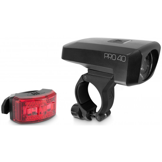 - features set includes: ACID front light PRO 40 and ACID rear light PRO; StVZO (German road traffic regulations) approved; 40 lux; splashproof; includes Micro-USB charging cable