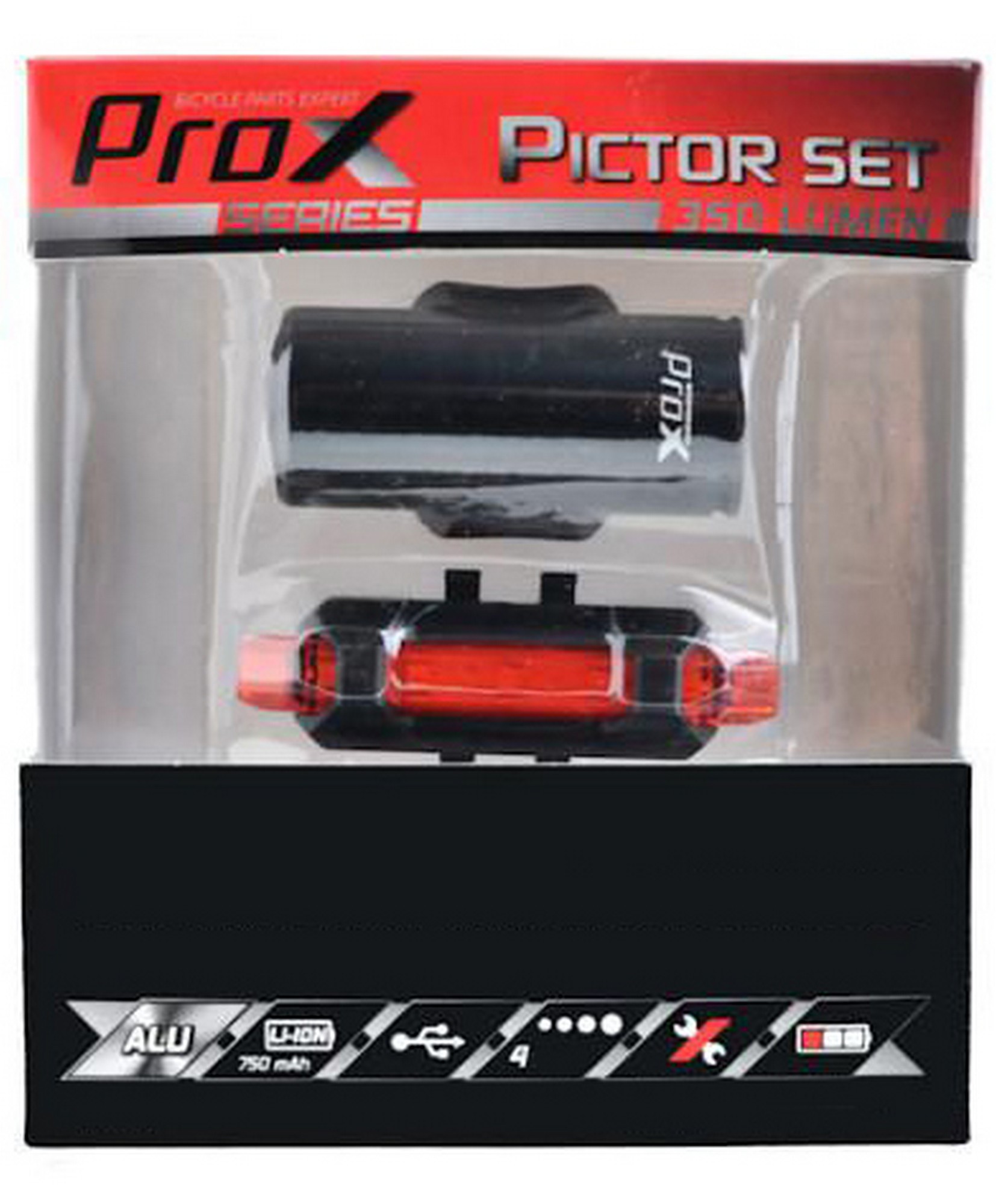 - Valosarja ProX Pictor CREE 350Lm + 10Lm USB red