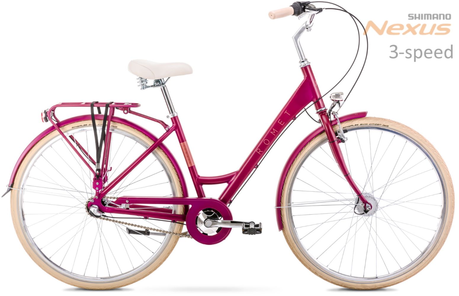 Runko: Aluminium 6061Haaruka: steelVaihteiden määrä: 3 speedVaihdevivut: Shimano Nexus 3 speedTakavaihtaja: Shimano Nexus 3 speedKampisarja: Cyclone CTL-3-101 38T 170 mmJarrut: Front: V-brake Promax TX-117 aluminium / Rear: Coaster brake (brakes when pedalling backwards)Renkaat: 28 x 1.75 (47-622)Vanteet: aluminium doublewallNavat: Front: Shimano Dynamo DH-3N31 / Rear: Shimano Nexus 3 speedRataspakka: 18TOhjaustanko: steelOhjainkannatin: steel Satulatolppa: steel 27,2 mm 300 mmSatula: Romet CityPedaalit: FP-804Lisävarusteet: Light set: LED 1 wat 36 lux / 3-LED, Carrier, Mudguards, ChainguardPaino: 15,8 kg
