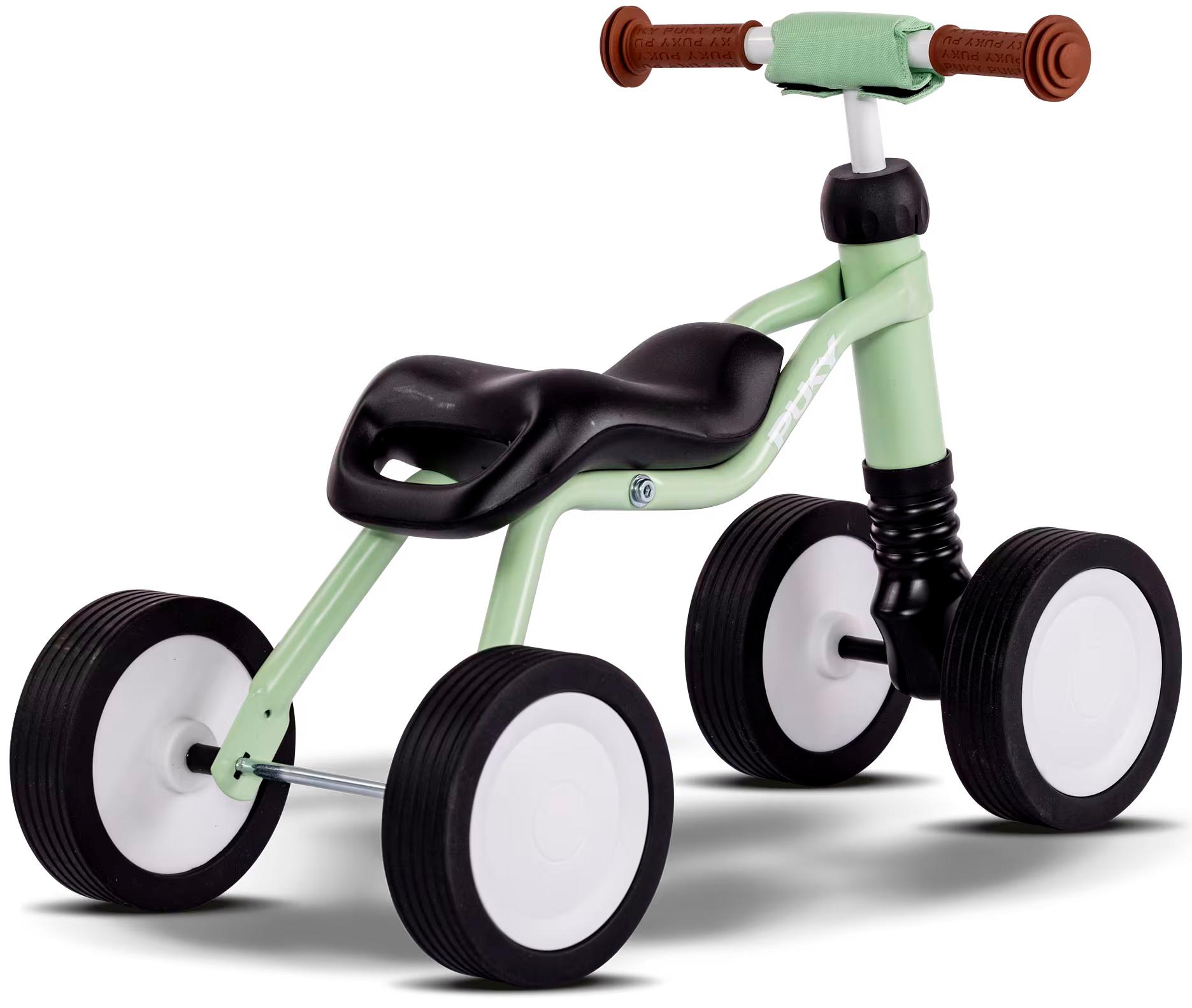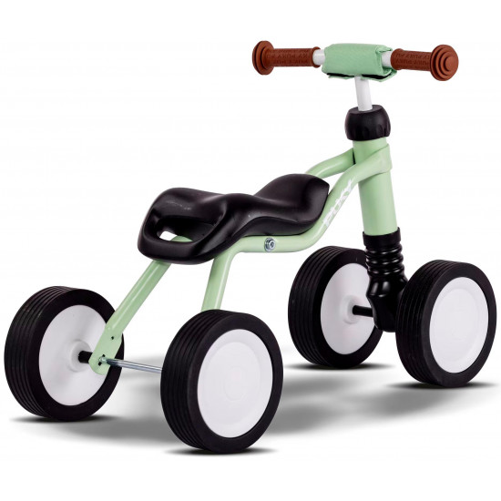 The front swing axle of the PUKY WUTSCH allows a flat steering angle and stabilizes the vehicle when encountering small obstacles. Children from the age of 1 ½, who can already walk safely, can also move around safely on level ground on the sidewalk or playground. The PUKY WUTSCH also promotes the further development of the sense of balance thanks to the swinging front axle and is therefore the logical successor to the PUKYLINO.